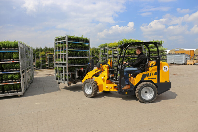 Sehr interessant sind auch die SLT-Versionen der Maschinen. Diese zeichnen sich durch eine niedrigere Gesamthöhe aus, die beim 2428 SLT mit Fahrerschutzdach gerade einmal 1,92 m beträgt. Somit können die Lader auch sehr niedrige Passagen durchfahren oder z. B. in Tiefgaragen eingesetzt werden.