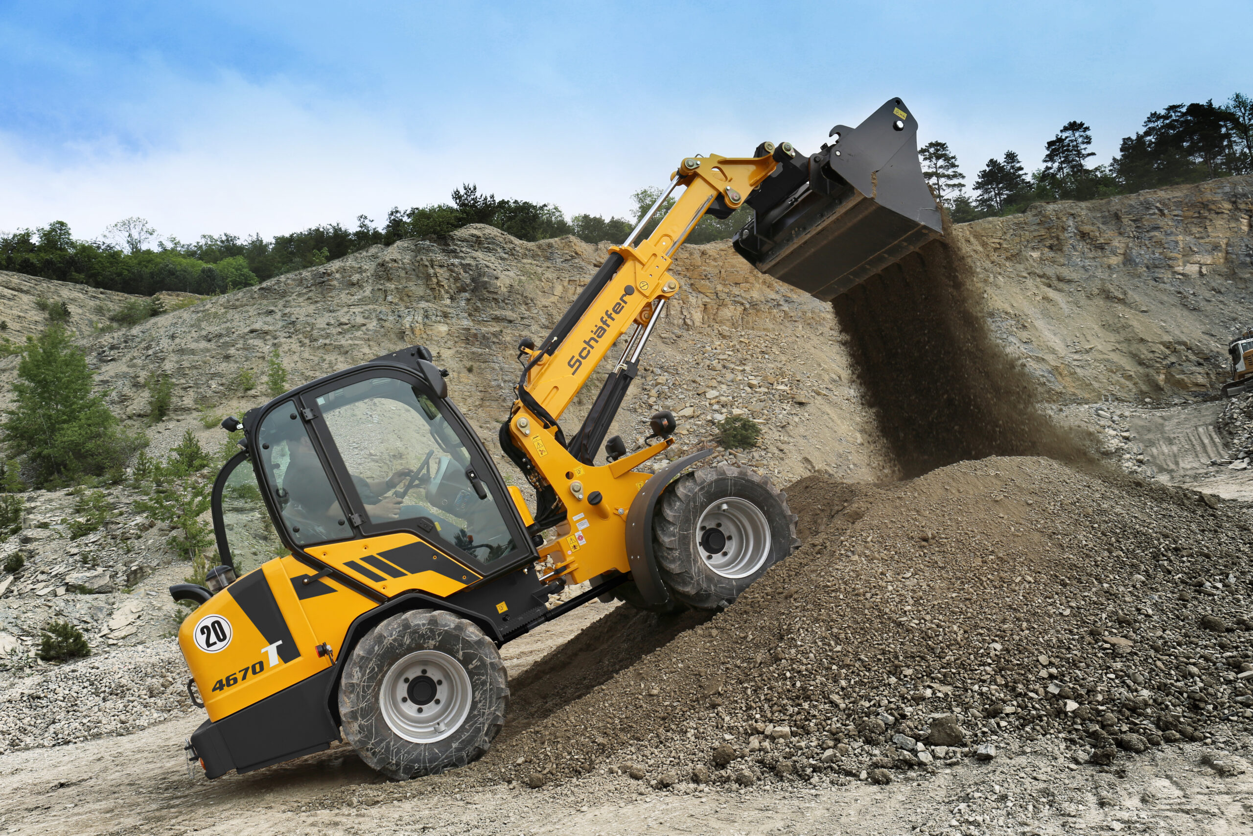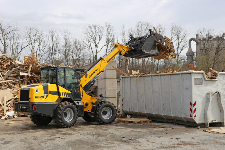 Die Teleradlader von Schäffer verbinden die Wendigkeit und gute Übersicht eines knickgelenkten Radladers mit der großen Hubhöhe und Reichweite eines konventionellen Teleskopladers.